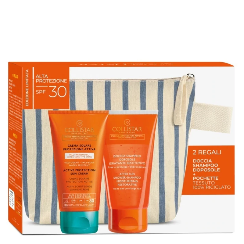 In a special edition full of sunshine, Collistar brought together, in a beautiful bag made of 100% recycled fabric, two essential products for the protection and beauty of the skin subject to sun exposure: Collistar Active Sun Protection Kit. This kit includes the Collistar Active Protection SPF30, a sunscreen suitable for the body and face to protect the skin during sun exposure, and offers the After Sun Shower-Shampoo, indicated to regenerate skin and hair after sun exposure and to fix the tan.