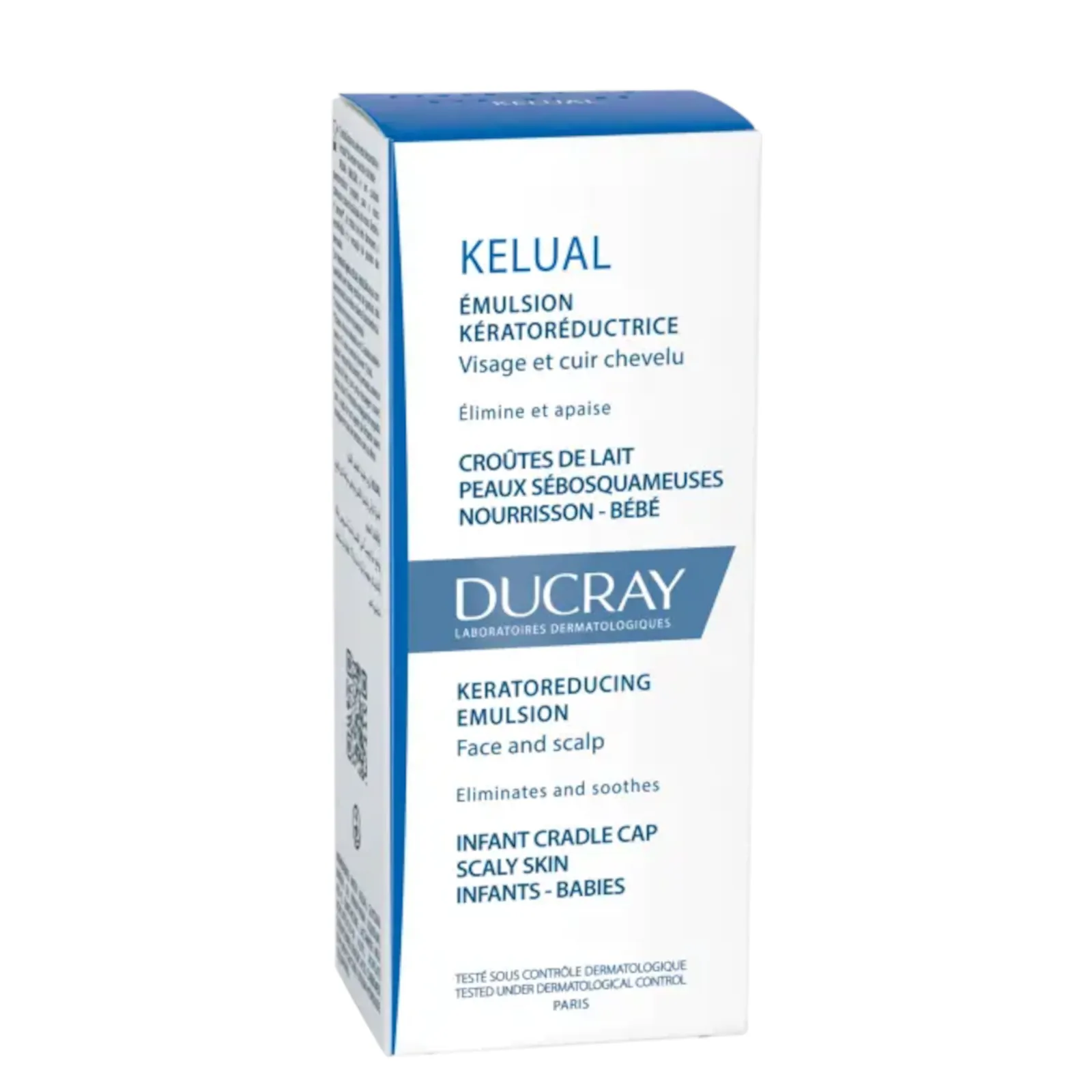 Since it can be removed quickly with the right products, Ducray has developed kelual ds emulsion which, thanks to its light, non-sticky texture, will gently act by removing the milky crust from the scalp.