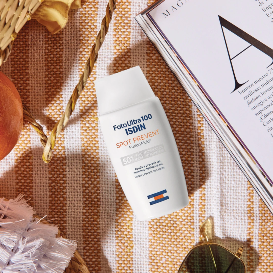Isdin Fotoultra 100 Spot Prevent SPF50 Fusion Fluid is a fluid facial sunscreen that provides UVA protection 3 times higher than the minimum recommended in an SPF50+ sunscreen! This very high protection helps prevent the formation of spots caused by the sun since UV radiation is the main stimulating factor for the production of pigmentation.