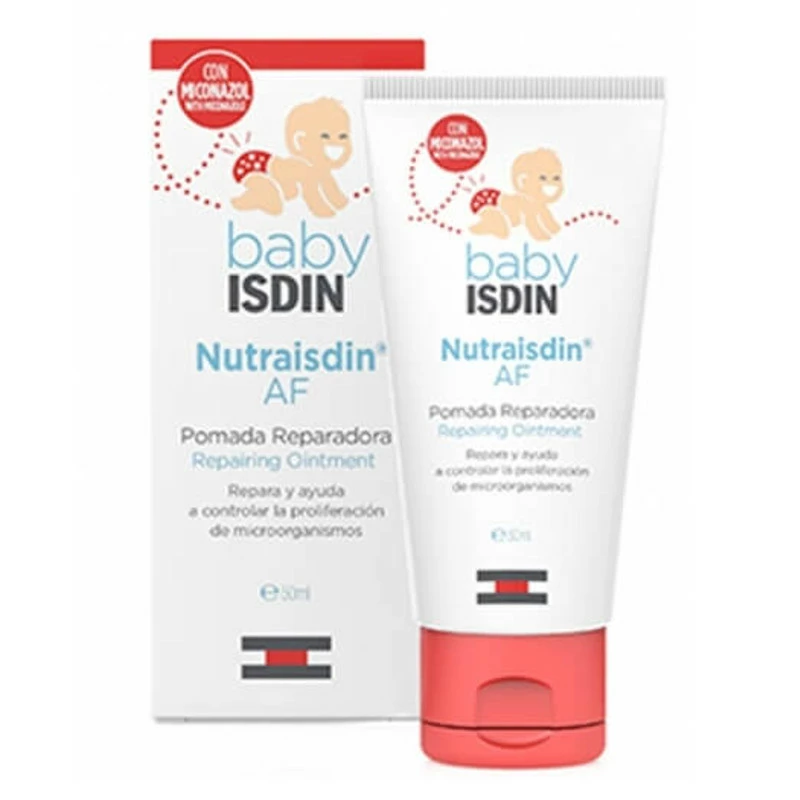 Isdin nutraisdin af repair ointment… Isdin nutraisdin af repair ointment is a restorative miconazole ointment for persistent diaper dermatitis. Combats irritation, redness and persistent diaper rash in the gluteal epidermis. Repairs and relieves the diaper area in just 7 days, very effectively and safely, thanks to its specific formula with Miconazole. It helps protect against irritation, diaper rash and redness in the diaper area thanks to its astringent and regenerating active ingredients (zinc oxide and dexpanthenol) and its ointment excipient.