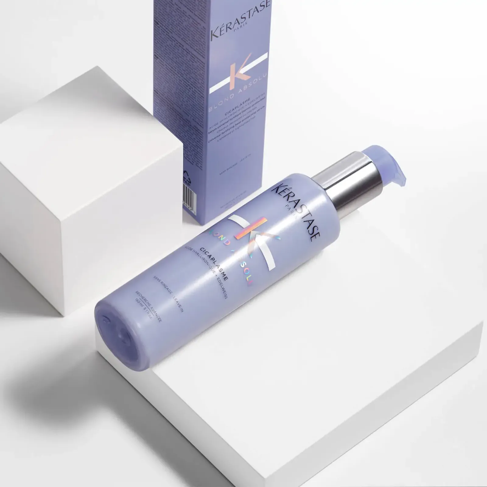 Kérastase blond absolu cicaplasme fortifying heat-protecting serum for blond hair is a thermal protection care, with violet correcting pigments, that acts as a treatment for all types of blond hair.