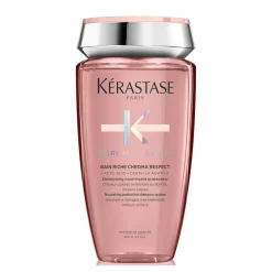 Kérastase Chroma absolu riche shampoo is a richly nourishing and protective bain for all types of color-sensitive or damaged hair. Specially adapted to medium to thick strands, it has a highly nourishing formula that cares for the hair while respecting and preserving the coloration.