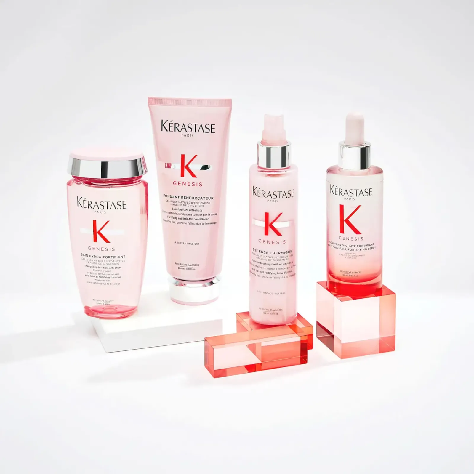 To obtain the desired results, we recommend you continue the routine with the Kérastase genesis intense fortifying hair mask as well as with the Kérastase genesis fortifying blow dry heat protectant.