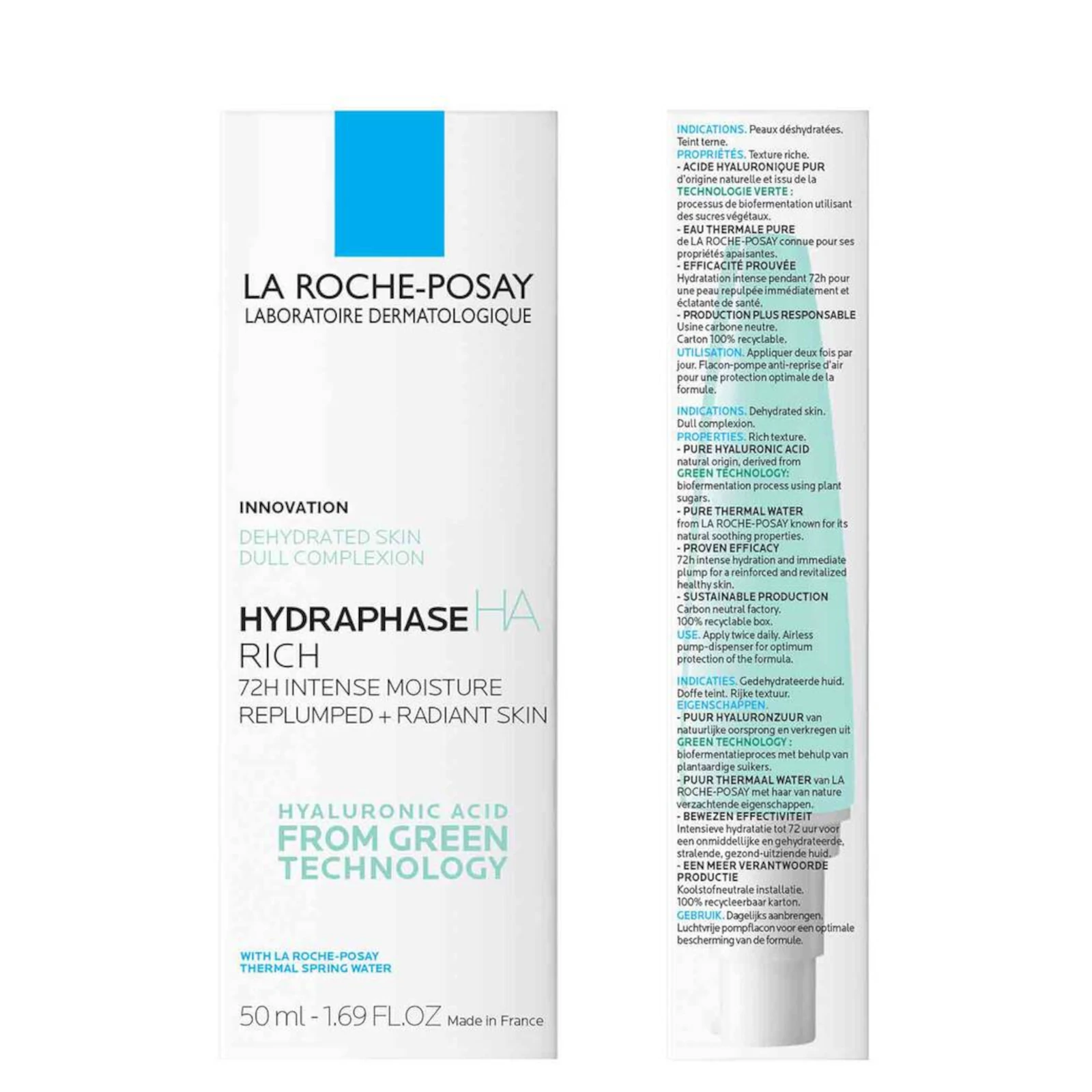 Developed with an association of Fragmented Hyaluronic Acid, Shea Butter and La Roche Posay Thermal Spring Water, Hydraphase HA Rich fills the skin immediately, reduces fine lines of dehydration, and protects skin from moisture loss.