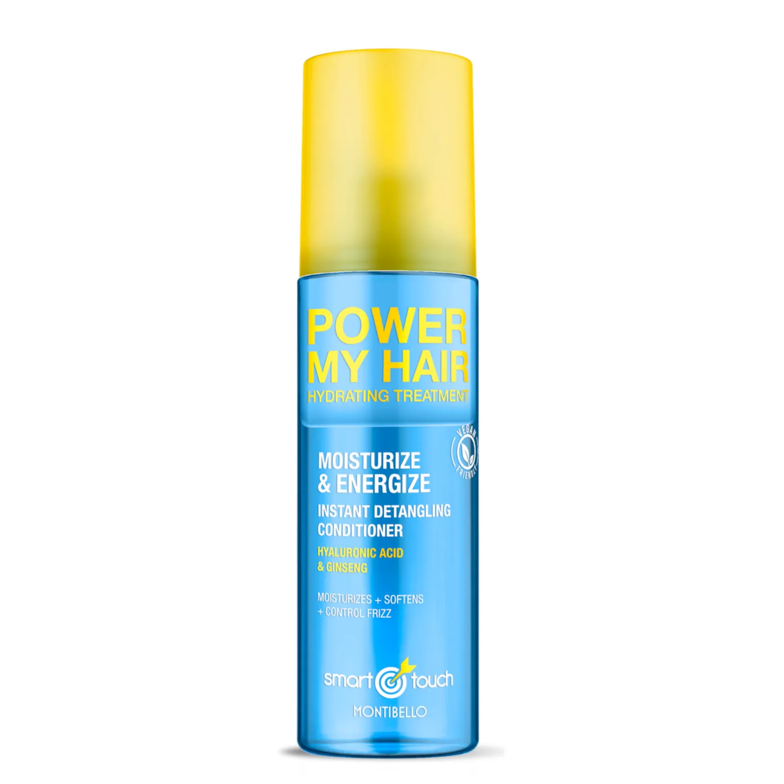 Montibello smart touch power my hair moisturize & energize instant conditioner is a daily energy boost that instantly detangles hair, reduces static and frizz moisturizes, and conditions the hair, delivering extra repair benefits at the tips.