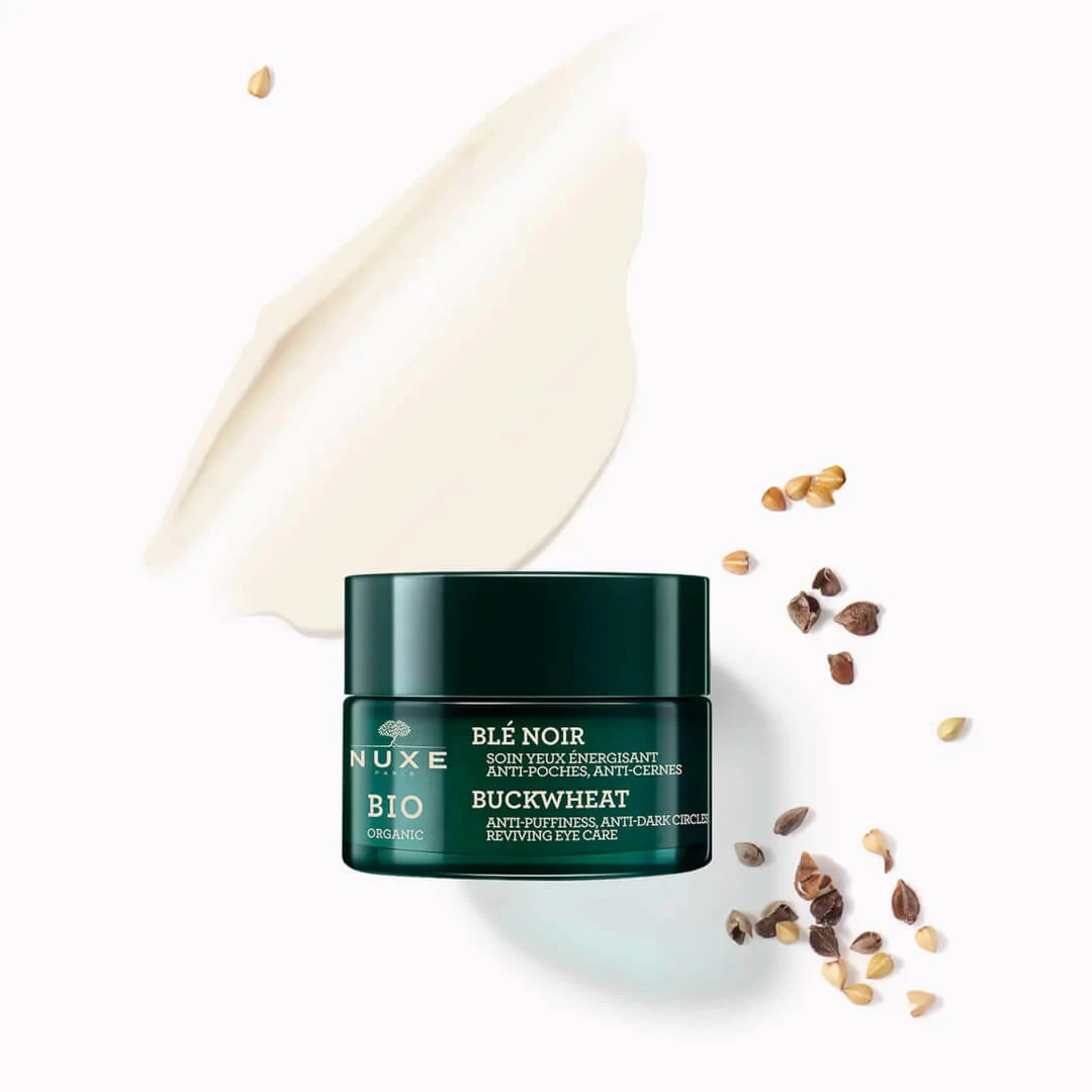 - Buckwheat extract, its star ingredient. Since it was extracted using supercritical CO2 its regenerative properties were enhanced. As such, it moisturizes and smoothes while stimulating a firming and revitalizing action to the eye area. As a result, fine lines are smoothed, puffiness and dark circles are visibly reduced.