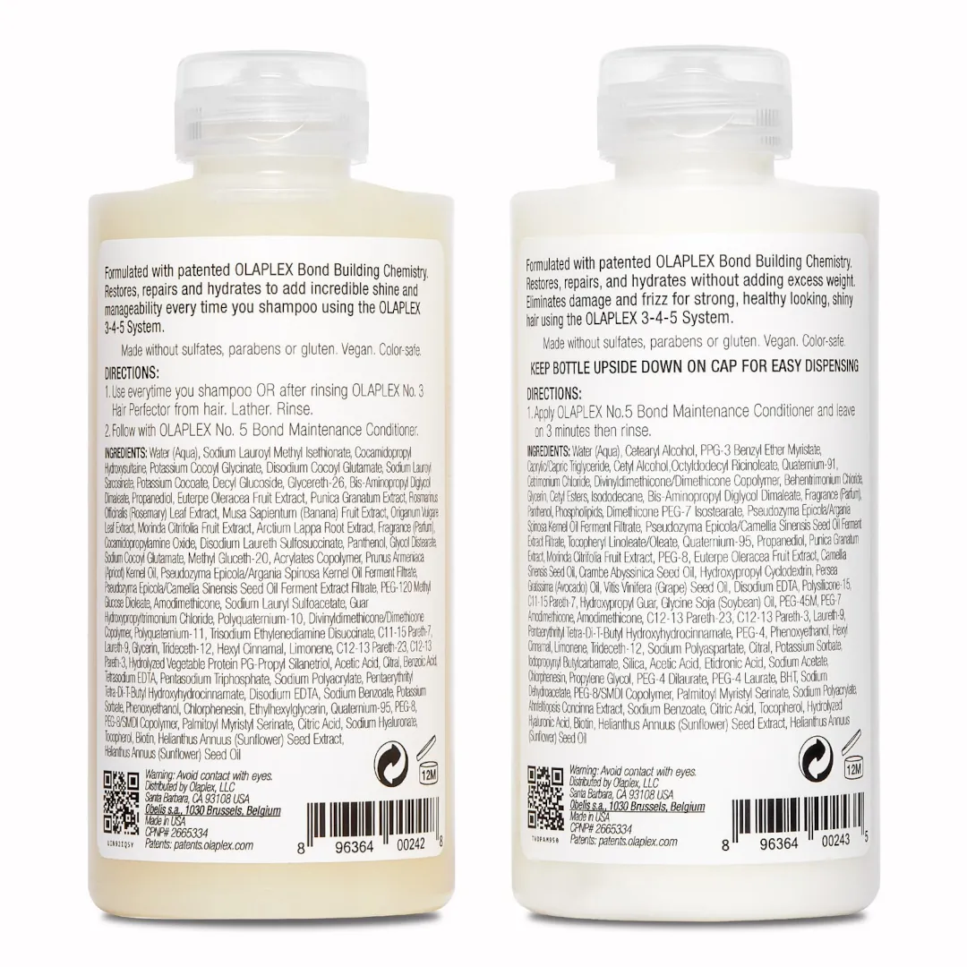 Olaplex daily cleanse & condition duo is a set of products suitable for daily hair care. In this sense, it contains two essentials of the brand: Olaplex nº4 bond maintenance shampoo and Olaplex nº5 bond maintenance conditioner. In synergy, these two products will keep hair looking healthy and soft to the touch, as well as give it a splendid shine. Enriched with the innovative patent Olaplex, this powerful duo will deeply repair and protect colored, damaged, or fragile hair.