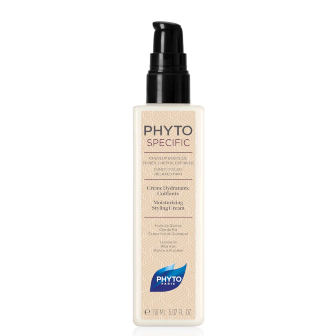 Phyto phytospecific moisturizing styling cream for curly and frizzy hair… Phyto phytospecific moisturizing styling cream is a weightless, fast-absorbing cream that hydrates and nourishes the hair without weighing it down and helps maintain the style natural and soft. The hair is hydrated, free from frizz, radiant, and flawless. A deeply hydrating and protecting styling cream, enriched with quinoa and rice wax. Great for all hair types, this leave-in cream restores shine and creates easy-to-manage strands. It may also be used as a finishing touch after styling to smooth kinky hair for a soft, touchable look and feel. Benefits… *Moisturizes and conditions *Strengthens hair *Reduces breakage *Softens and restores curls’ natural luster and shine VEGAN | PARABEN-FREE | SULFATE-FREE | SILICONE-FREE | GLUTEN-FREE | PHTHALATES FREE Key Ingredients… *Quinoa Oil: Rich in proteins, it acts as a reconstituting agent. Quinoa oil also protects hair from external damage, by repairing it and improving its elasticity: it forms a film that prevents breakage. *Rice Wax: Recognized for its protective and emollient properties, it has excellent film-forming and texturing power which allows it to act effectively against dehydration of the hair fiber. *Mallow Extraction: Acting as a humectant by retaining water, it guarantees the hydration of the hair and softness of the hair fiber.