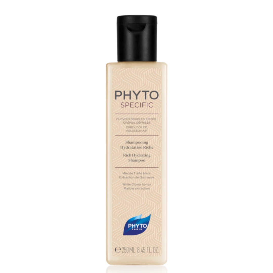 Phyto phytospecific rich hydrating shampoo for curly and frizzy hair… Phyto phytospecific rich hydrating shampoo strengthens hair, protects it from external aggressions, and prevents split ends. The formula gently removes impurities while replenishing with essential moisture to detangle and soften curls and hydrate the scalp. Curls are left soft, bouncy, and shiny with increased health and strength. This hydrating shampoo delivers supreme softness and manageability while gently removing impurities to even the thirstiest hair. It restores and protects hair from external aggressors and replenishes and locks in moisture, leaving you with silky smooth, hydrated, healthy-looking hair. Benefits… *Gently removes impurities *Replenishes and locks in moisture *Regenerates and protects hair from external aggressors *Delivers softness and manageability VEGAN | PARABEN-FREE | SULFATE-FREE | SILICONE-FREE | GLUTEN-FREE | PHTHALATES FREE | MINERAL OIL FREE Key ingredients… *White Clover Honey: Rich in amino acids and proteins, it allows water to be captured in the hair fiber for better hydration and to limit its evaporation. *Mallow Extraction: Acting as a humectant by retaining water, it guarantees the hydration of the hair and softness of the hair fiber.