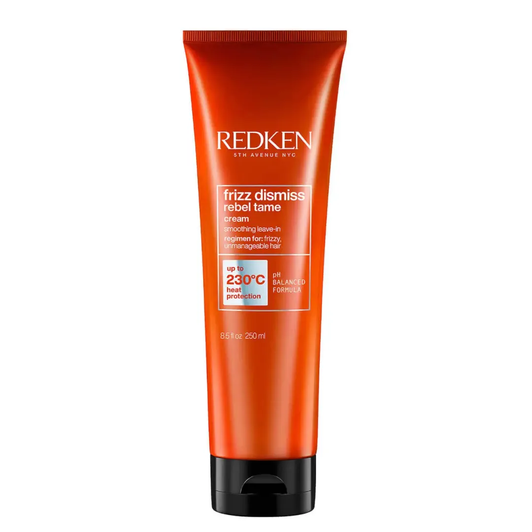 Redken frizz dismiss rebel tame is a leave-in, multi-benefit cream, indicated for hair that wishes to control unwanted frizz. In this sense, enriched with babassu oil, it nourishes, straightens and at the same time offers optimal protection against temperature. That is, you can use heat tools on your hair in complete safety since it protects up to 230ºC/459ºF.