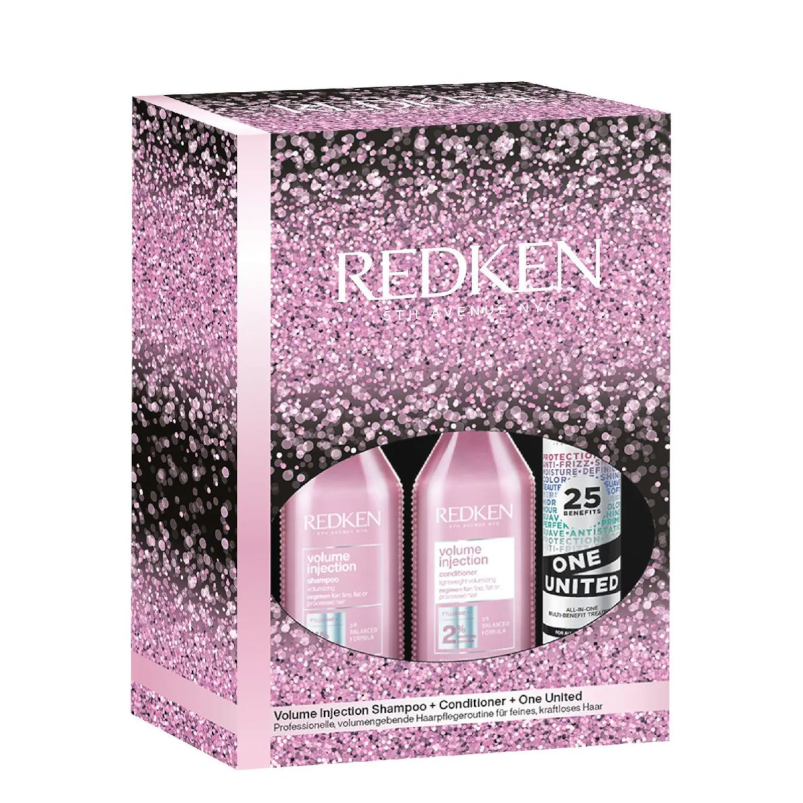 Redken volume injection fine hair set brings together three essential care products to give fine, straight, processed hair volume, manageability, and shine. Thus, it includes: Redken volume injection shampoo 300ml 10.1 fl.oz, Redken volume injection conditioner 300ml 10.1 fl.oz, Redken One United All-in-One Multi-Benefit Treatment Leave-in with 25 benefits 150ml 5fl.oz.