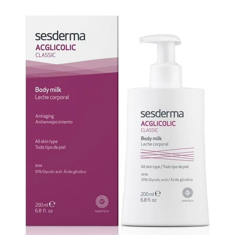 Sesderma acglycolic classic anti-aging body milk is a deep moisturizing care formulated based on free glycolic and liposomal acid, which ensures 3 skin effects: moisturizing, anti-aging, and regenerating and renewing effect.