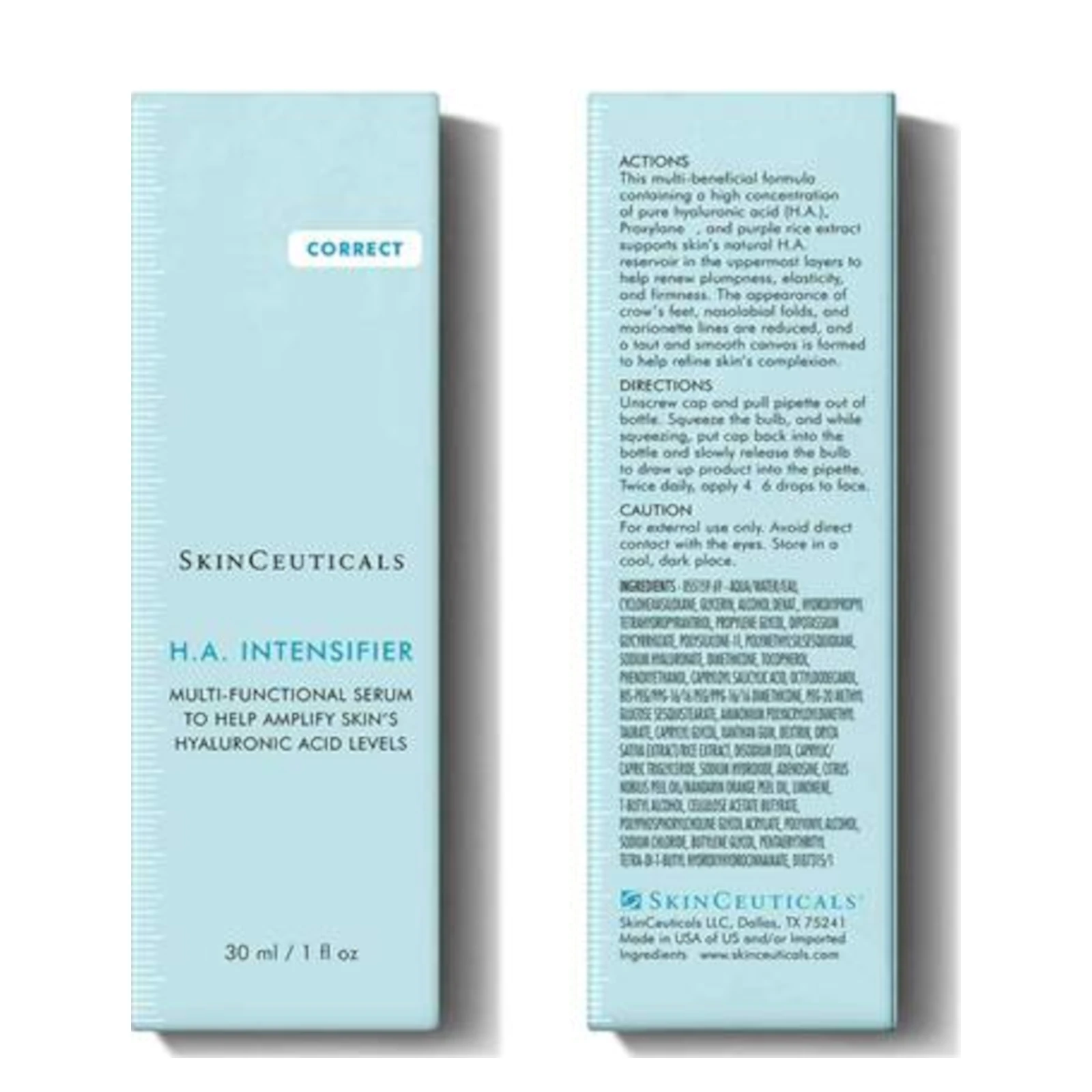 Skinceuticals h.a. intensifier serum is a multi-benefit formula with a high concentration of hyaluronic acid (HA), Proxylane and violet or purple rice extract. It aims to help maintain the skin’s natural reserve, improving the skin’s plumpness, elasticity as well as firmness.