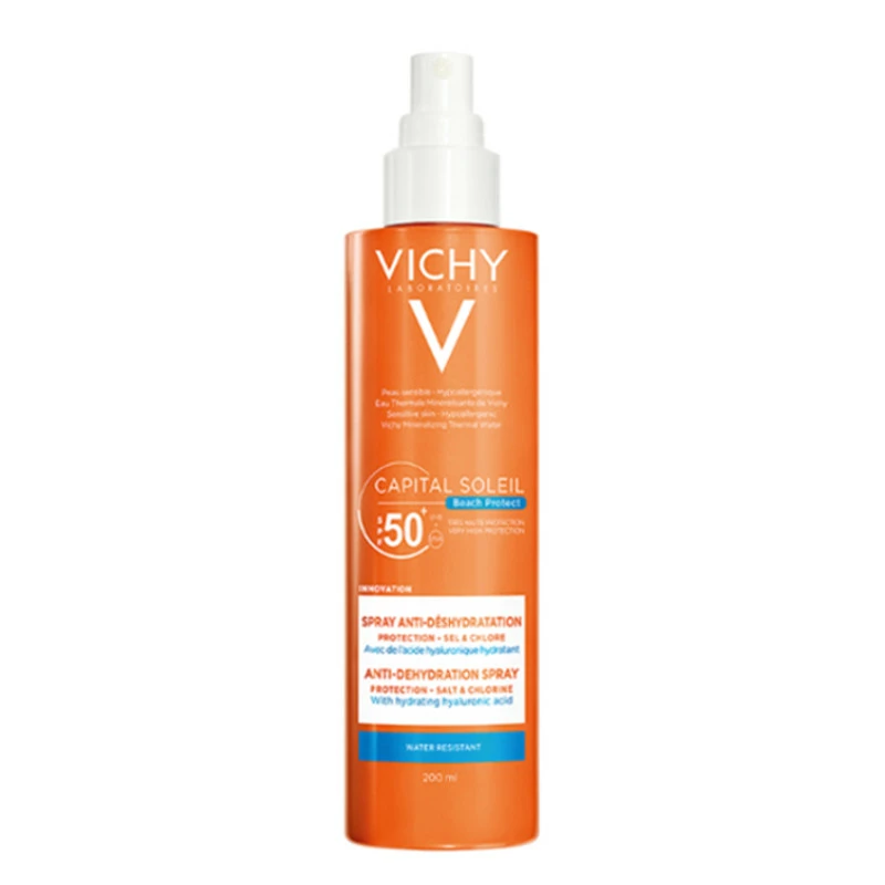 Vichy Capital Soleil SPF50 Anti-dehydration Spray is a sunscreen developed with “Beach Protect” technology. It is a technology that provides protection that is resistant to the factors affecting sun protection on the beach. In particular salt and chlorine. It therefore presents a repellent ability of these factors, thus ensuring a continuous protection of the skin.