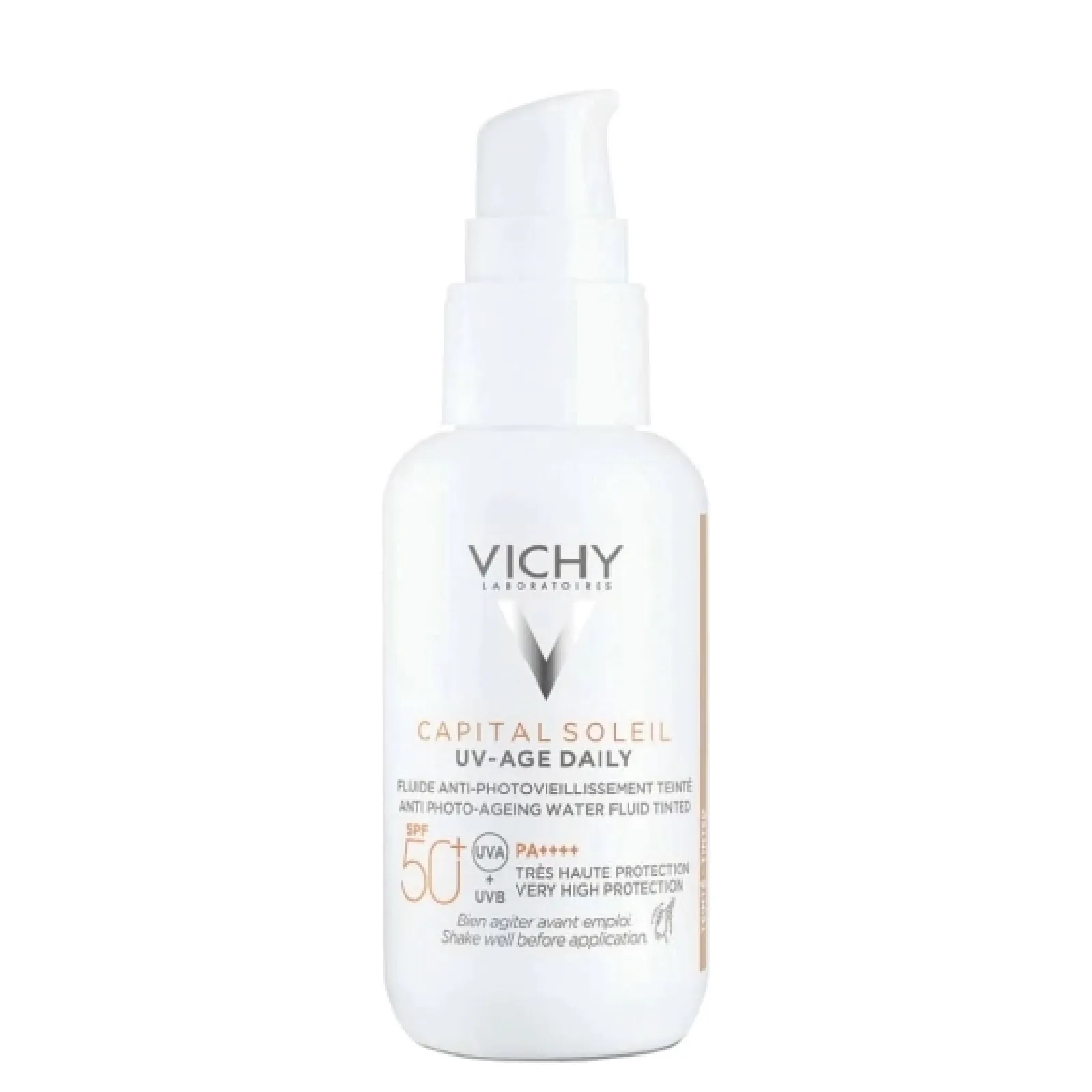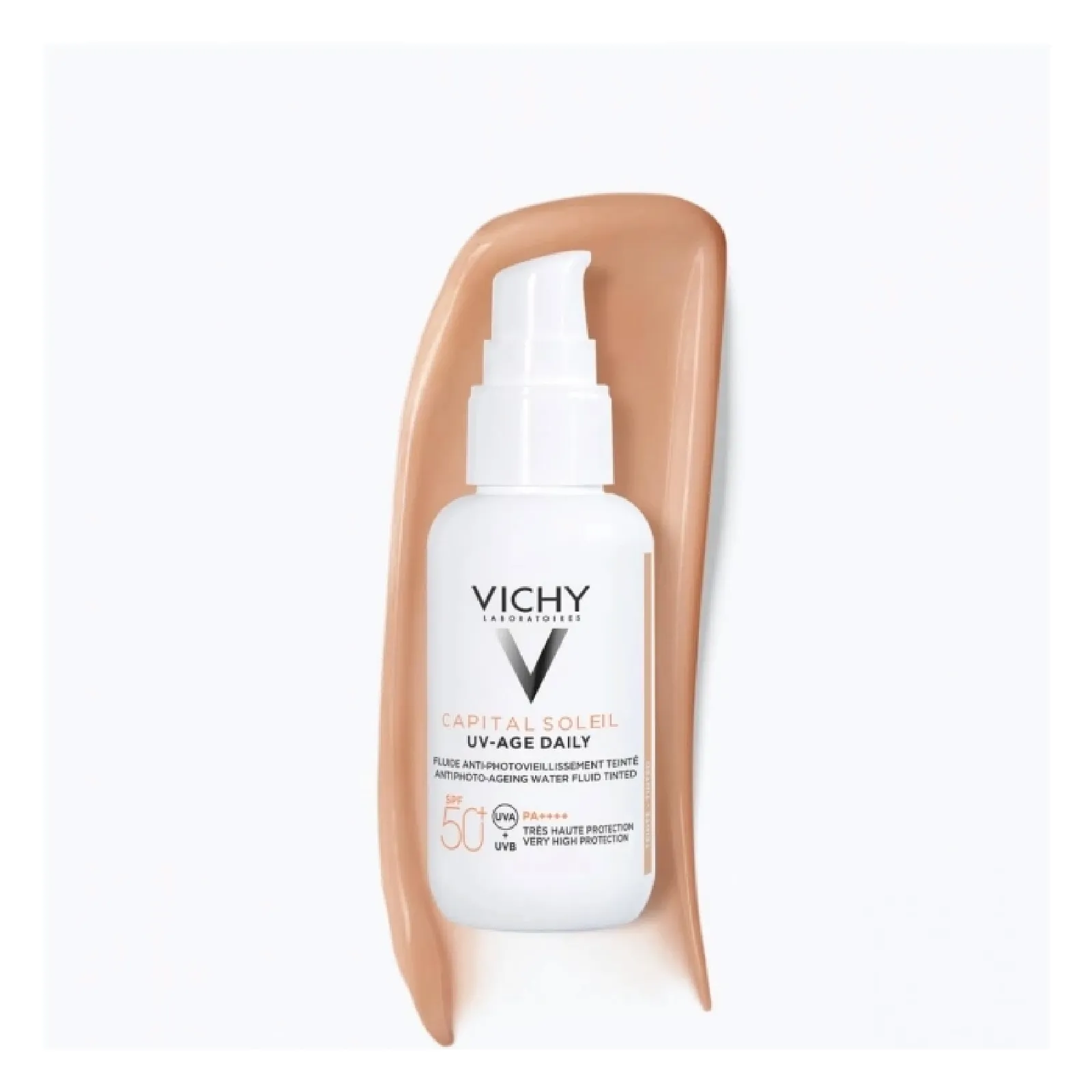 Vichy capital soleil tinted uv age spf50 anti-aging fluid is a high protection sun care. It has a powerful double action, offering a luminous tan while retaining your youth. Suitable for all skin types.