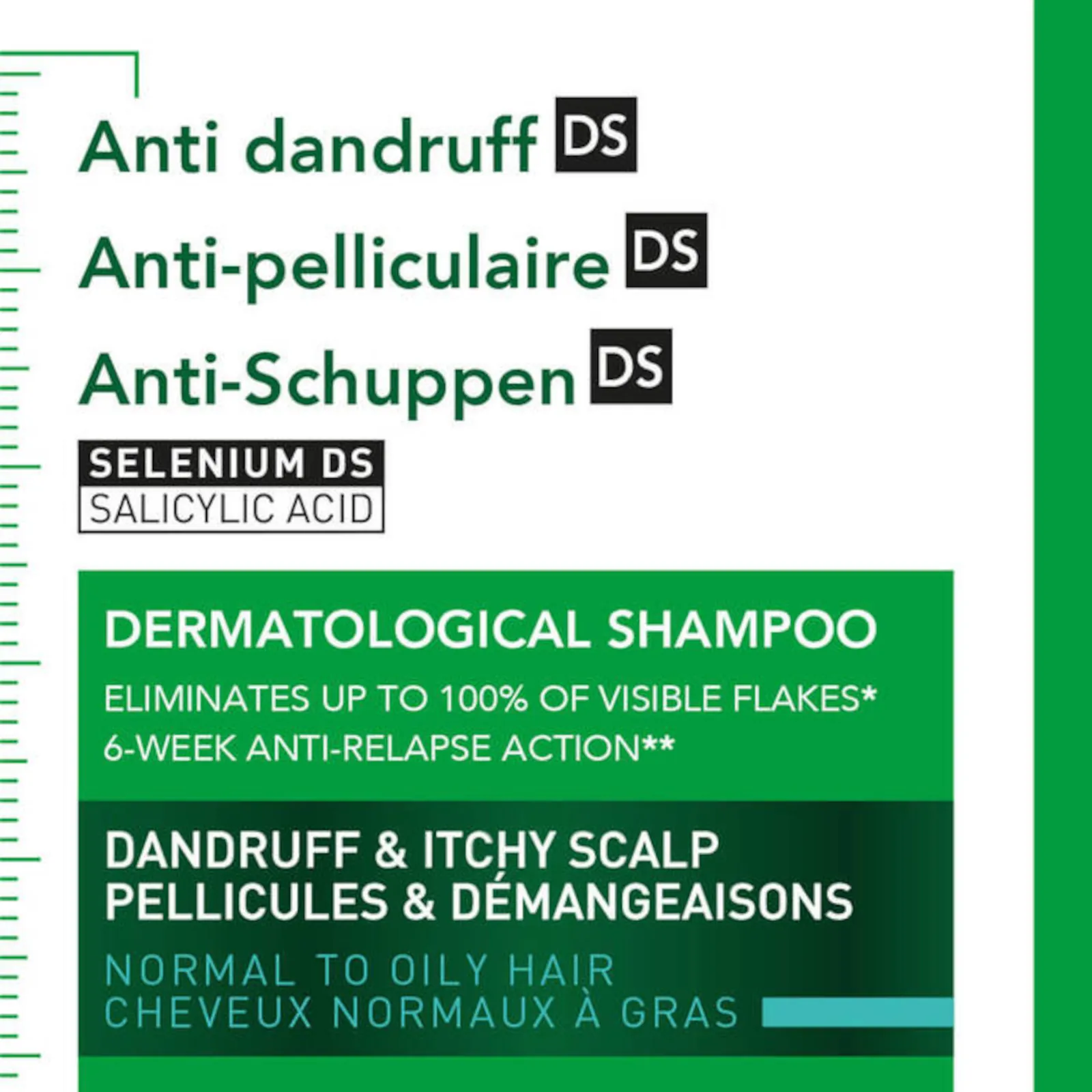 Vichy dercos anti-dandruff ds shampoo refill for oily hair is indicated for the treatment of visible dandruff, associated with itching and irregular sebum production.