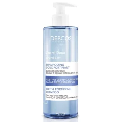Vichy Dercos Mineral Soft and Fortifying Shampoo is a daily use shampoo suitable for all hair types. Vichy Dercos Mineral Soft and Fortifying Shampoo is a frequent shampoo that rinses the hair and scalp smoothly, preventing its dehydration. Its soothing and fortifying action maintains balance of the scalp, leaves hair stronger and brighter, with a noticeably healthier look.