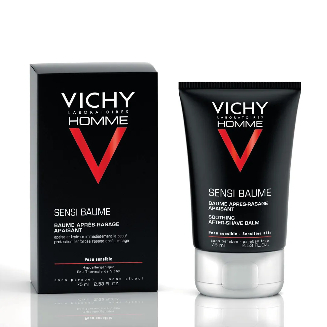 Vichy sensi-baume soothing after-shave balm for man is a scrub balm suitable for sensitive skin, which calms and strengthens the sensitized skin after shaving. Ideal for skin that with the blade friction, become irritated, with ardor and discomfort, and that seek soothing care without alcohol, without perfume and without parabens. Enriched with Fortifying Thermal Water, Sensi-Baume After-shave soothes instantly, while Calcium repairs battered skin and strengthens shaving after shaving, increasing tolerance and comfort. How to use Vichy sensi-baume soothing after-shave balm for man? Apply to clean and dry skin after shaving. Then apply the face moisturizer.