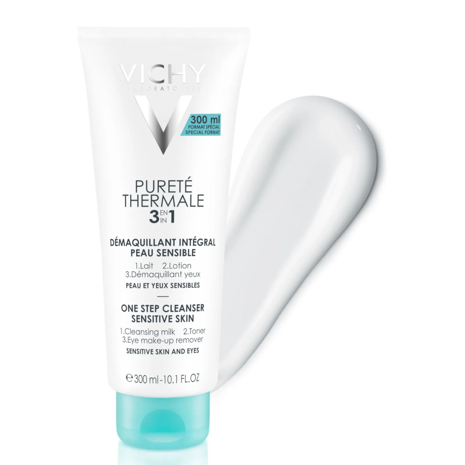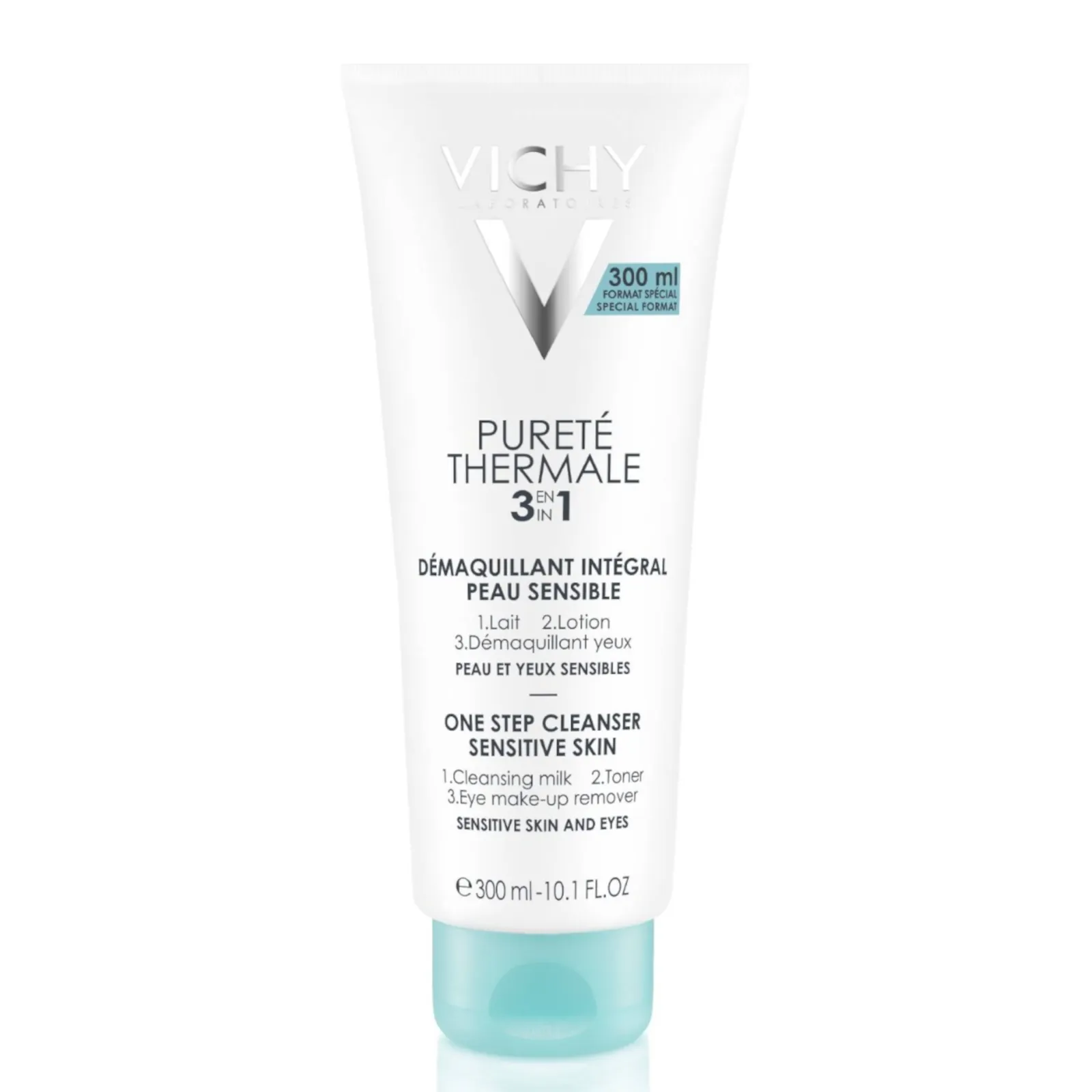 Vichy pureté thermale 3in1 milk cleanser developed in an innovative “milk-gel” texture, Pureté Thermale Integral Cleanser combines three essential functions in skin cleansing in one product: face cleansing milk, moisturizing tonic and eye makeup remover.